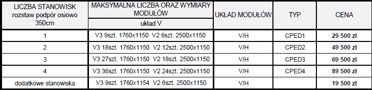 Cennik różnych wersji CPED - ceny netto