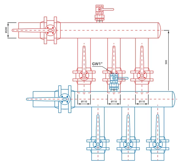 Konstrukcja rozdzielacza geotermalnego zabudowanego w studni pozwala ponadto na poprawne wypłukanie, napełnienie i odpowietrzenie instalacji dolnego źródła. Zawory i przepływomierze zamontowane są w rozdzielaczu w sposób umożliwiający ich wymianę. Elementy mosiężne zintegrowano z tworzywową częścią układu przy użyciu połączeń rozłącznych, których rozkręcenie gwarantuje dostęp do czynności serwisowych takich jak wymiana elementu bądź jego przegląd. Ustawienie optymalnego i wymaganego przepływu należy dokonywać wyłącznie poprzez regulację rotametrami. Zawory służą do odcinania przepływu.