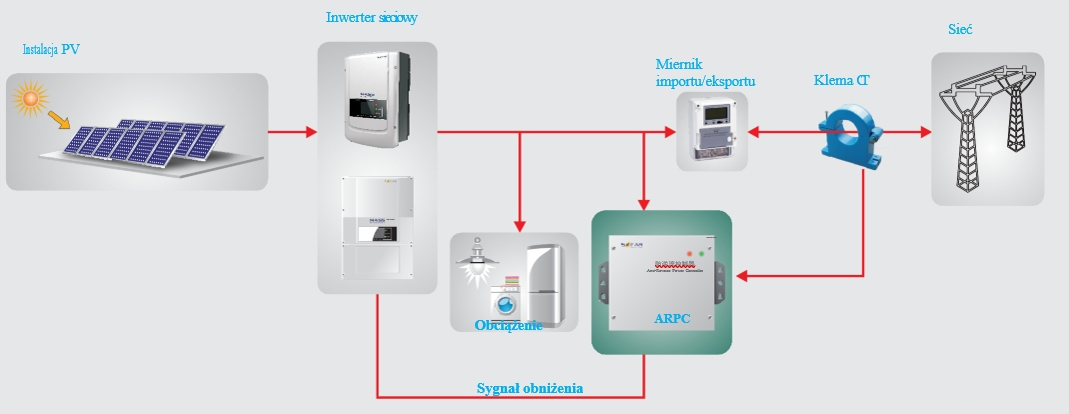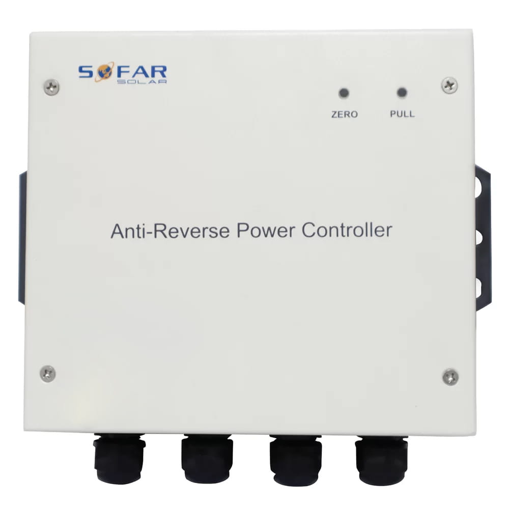 Anti - Reverse Power Controller (blokada wypływu energii do sieci) - Urządzenie ograniczające przepływ energii elektrycznej do sieci publicznej: umożliwia podłączenie do układu jedno i trójfazowego, automatycznie wysyła sygnały obniżenia wartości znamionowych w czasie rzeczywistym. Pozwala na podłączenie do kilku falowników (max.12). Instalacja jest łatwa dzięki klemom CT. Może być stosowany do SOFAR SOLAR KTL-X, TL, TL-G2 ( druga generacja falowników SOFAR SOLAR)